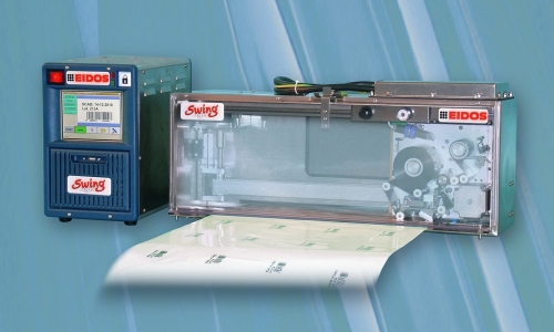 La SWING 5.i es una impresora “thermal transfer” que imprime en forma automática y directa sobre film plástico o papel y puede trabajar tanto como impresora de gran área en envasadoras “simple tracking” como imprimiendo repeticiones de texto en envasadoras multi tracking. El modelo mayor imprime un área muy grande (hasta 128 x 520 mm).